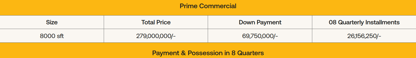 Discover the perfect space to elevate your business at Lake City Downtown. Our 6.6 marla Prime Commercial buildings offer an ideal setting for retail shops, offices, or dining establishments. Positioned strategically to draw in foot traffic and enhance visibility, these buildings provide a gateway to success in Lahore's bustling commercial landscape. Join us and make your mark in the heart of opportunity.