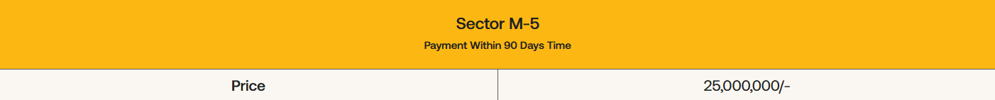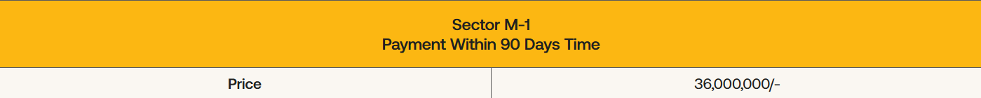 Sector M-1 offers a wide range of 1 Kanal residential plots, packaged with a perfect community living comprised of lush green parks, wide & well-kept roads, 24/7 uninterrupted power through underground electrification and other necessary services including proper gas and sewerage pipelines. It provides a state-of-the-art living in a gated environment with top notch security.
