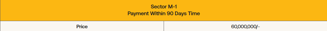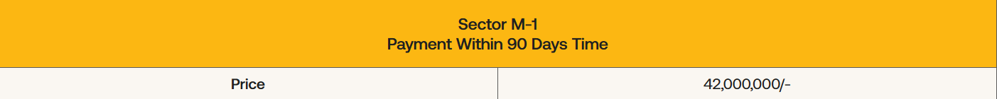 Sector M-1 offers a wide range of 14 Marla residential plots packaged with a perfect community living comprised of lush green parks, wide & well-kept roads, 24/7 uninterrupted power through underground electrification and other necessary services including proper gas and sewerage pipelines. A state-of-the-art living in a gated environment with top notch security.