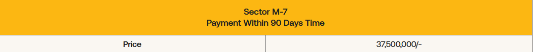 Sector M-7 is a very well-developed location offering diversification within a gated community which offers 14 Marla residential plots. It is equipped with luxury services such as uninterrupted electricity, community parks, wide roads, 24/7 gated security & surveillance, sector mosques, and nearby commercial areas, which makes it the most desired community living.